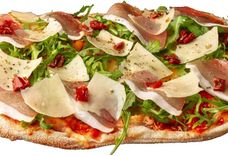 250 г • Моцарелла, прошутто, вяленые томаты, пармезан Грано Подано, руккола, соус из томатов